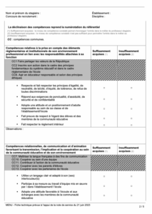 L’avis d’un membre des corps d’inspection de la discipline désigné par le recteur, établi sur la base d’une grille d’évaluation et après consultation du rapport du tuteur désigné par le recteur, pour accompagner le fonctionnaire stagiaire pendant sa période de mise en situation professionnelle. L’avis peut également résulter, notamment à la demande du chef d’établissement, d’une inspection ;